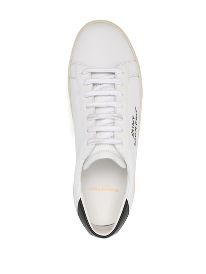 White/black calf leather embroidered logo to the side branded heel counter front lace-up fastening round toe flat rubber sole branded insole