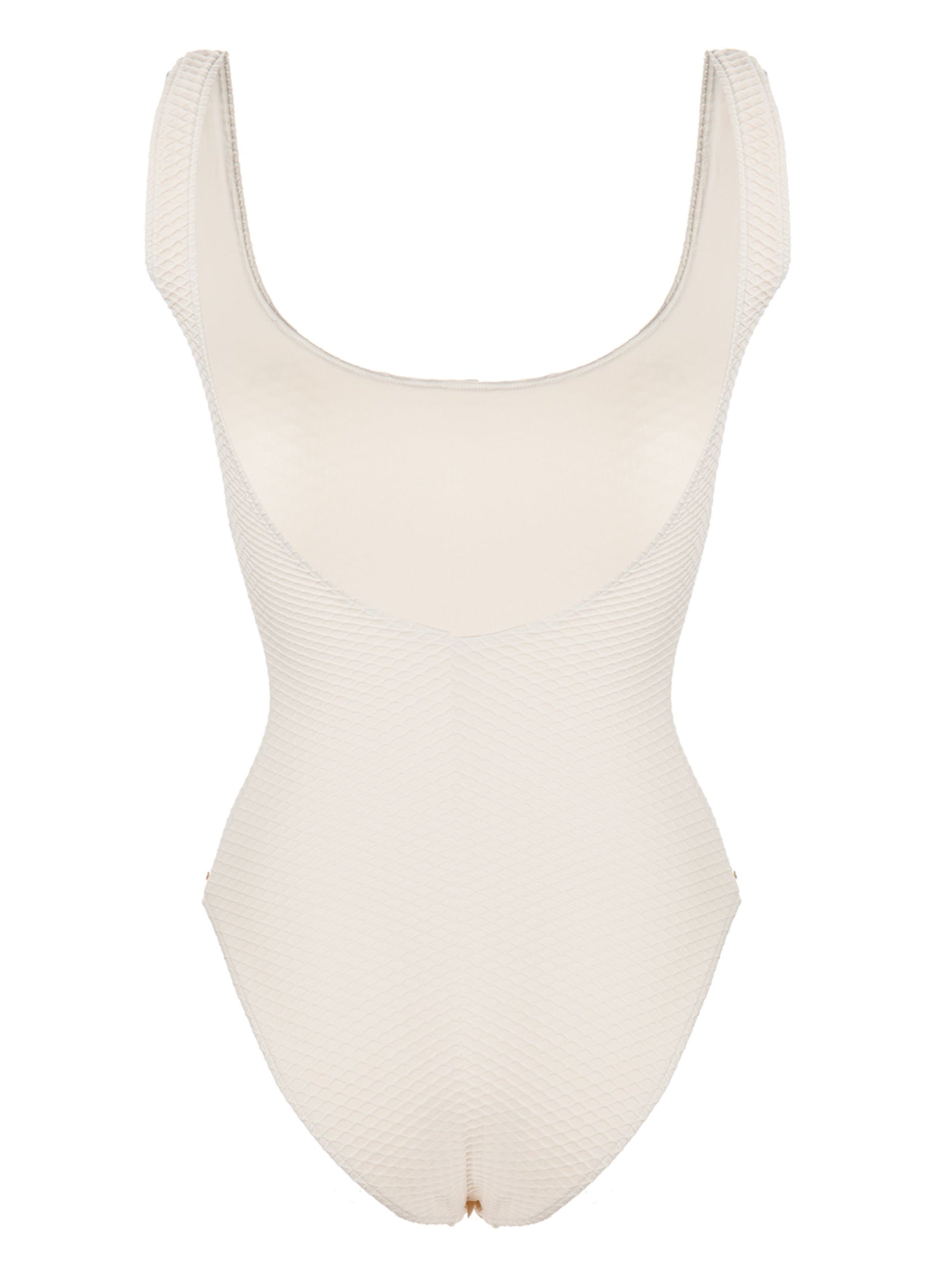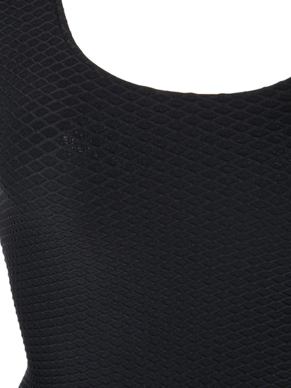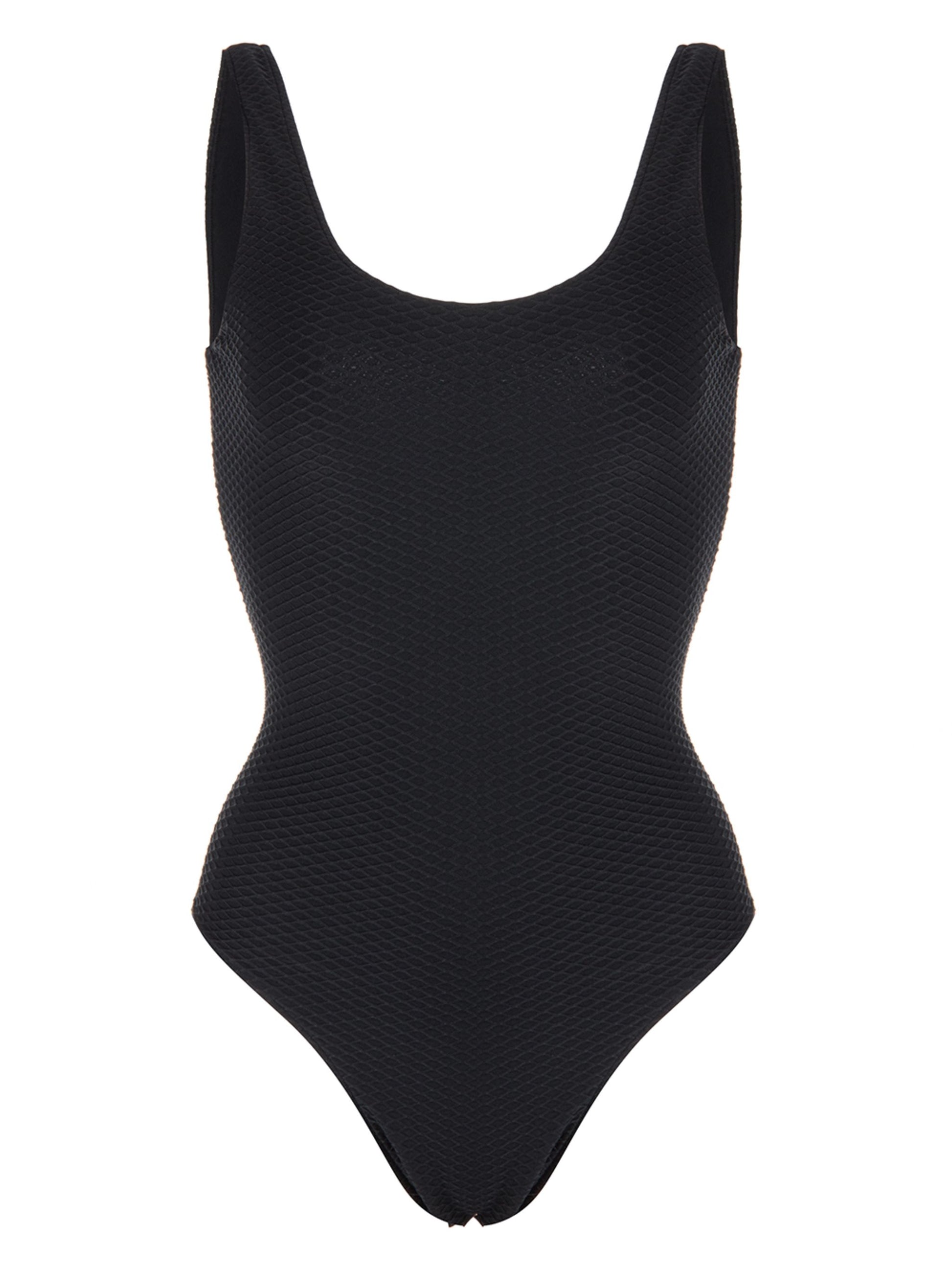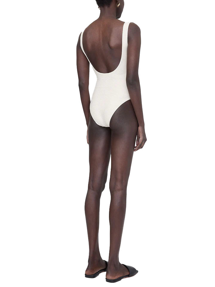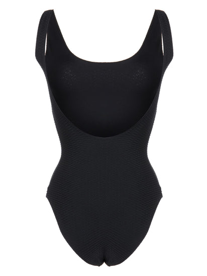 A timeless swimsuit featuring a universally flattering round neckline and low scoop back. The Jace One Piece is constructed from a fully-lined recycled nylon-spandex fabrication accented with honeycomb-inspired surface texture.