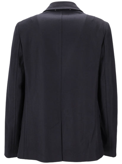 black three-button fastening long sleeves straight hem wool-blend