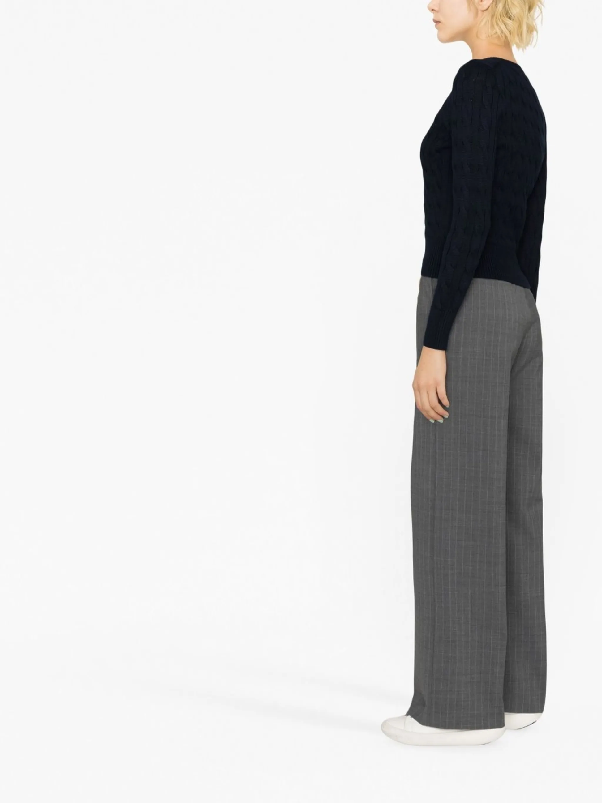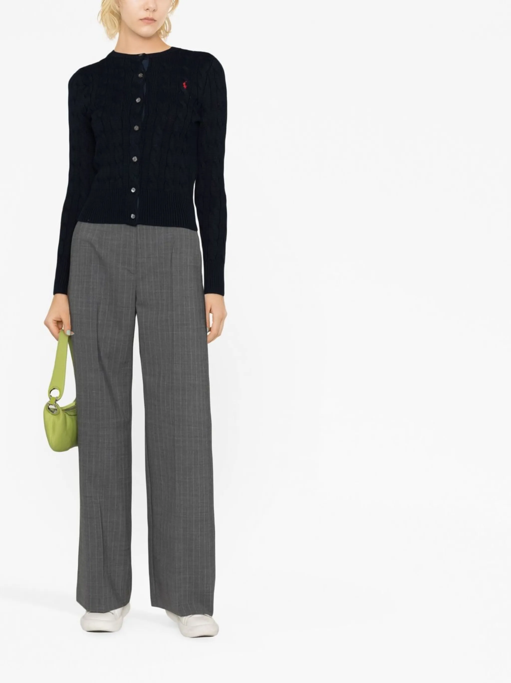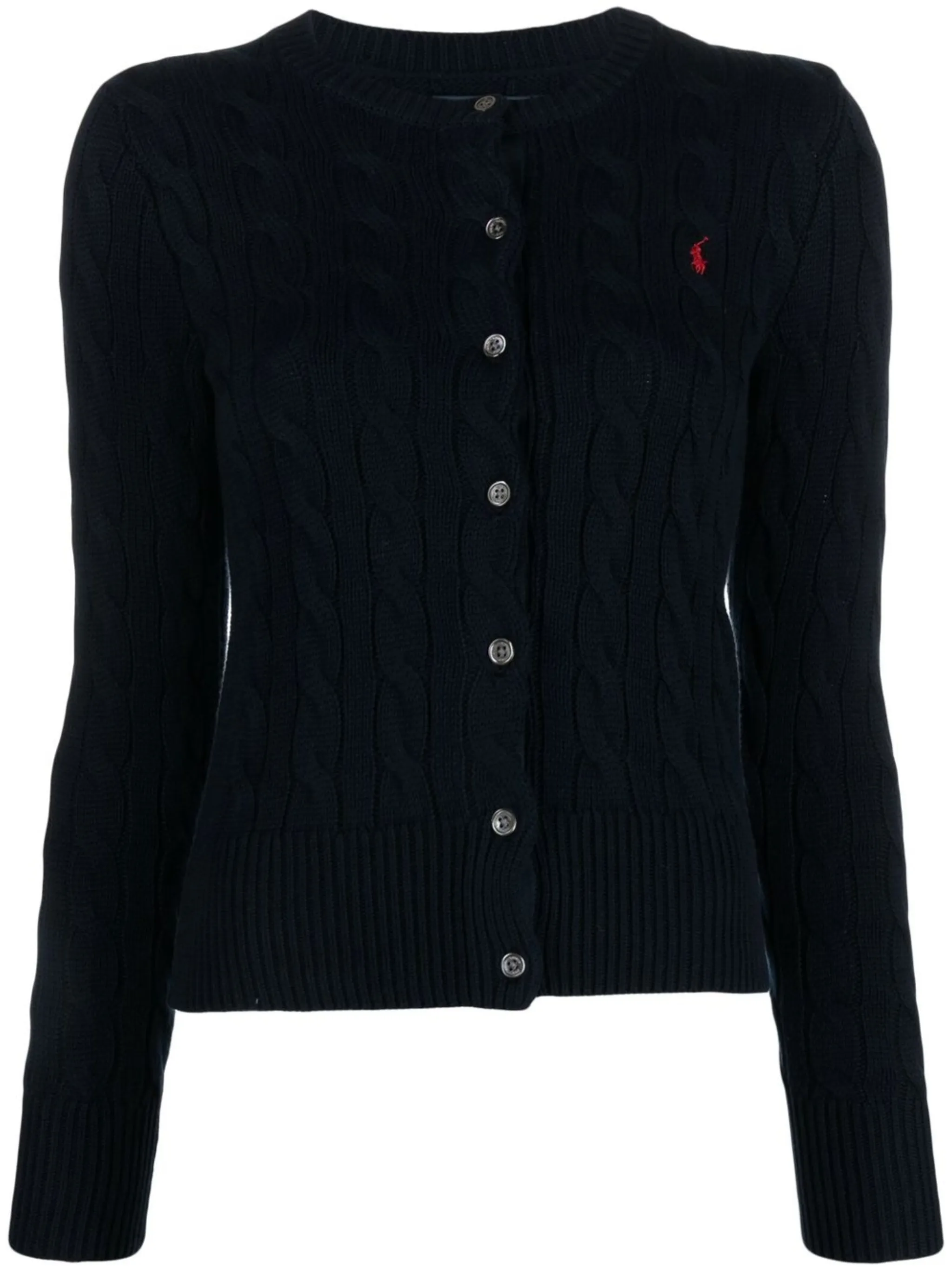 Polo Ralph Lauren channels its signature preppy aesthetic into this casual style. With its navy blue cotton construction and classic cable knit, this cardigan displays the brand’s uncanny ability to strike the balance between English heritage look and Ivy League classics.