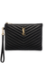 Do you tend to be the annoying one that struggles to find their plastic to pay for coffee in the morning rush queue? Ensure you don't hold people up and make the barista roll their eyes by keeping all that you need in this black quilted leather purse from Saint Laurent which has a detachable wrist strap that can be attached to your hand. Featuring a top zip fastening, a gold-tone YSL logo and an internal slip pocket with brand patch.