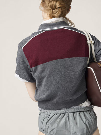These briefs embody the rebellious spirit of the Miu Miu wardrobe and are distinguished by the layering effect and characteristic touch of technical silk that create bold, new looks.